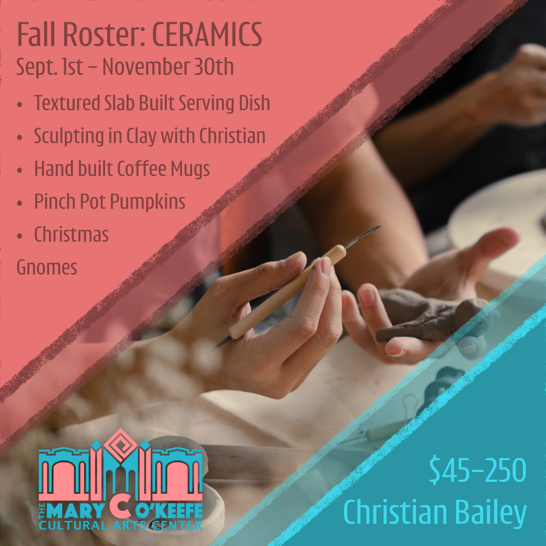 Categories: All Art Ceramics Culinary Dance Jewelry Making Music Sewing Special Topics Theater Classes All | Art | Ceramics | Culinary | Dance | Jewelry Making | Music | Sewing | Special Topics | Theater | Textured Slab Serving Dishes Digital Arts for Kids Fitness Wellness Workshop MC KIDS ART MC JUNIOR ARTISTS PUBLIC JEWELRY AND LAPIDARY CLASS Digital Arts for Adults Coastal Keepsakes: Mixed Media & Resin Art Handbuilt Coffee Mugs Sold Out Christmas Gnomes Sculpting in Clay with Christian Schweitzer Supper Club BEGINNER GUITAR COURSE INDIVIDUAL GUITAR AND UKULELE LESSONS Social-Emotional Learning Sessions Introduction to Fly Fishing Pinch Pot Pumpkins Irish Dance Novice Class Irish Dance Advanced Irish Dance Beginner Class Midlife Fitness for Women Nutrition and Functional Fitness for Everyday Life