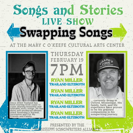 Join the Mississippi Songwriters Alliance every third Thursday for songs and stories from local to national artists. Free and open to the public.