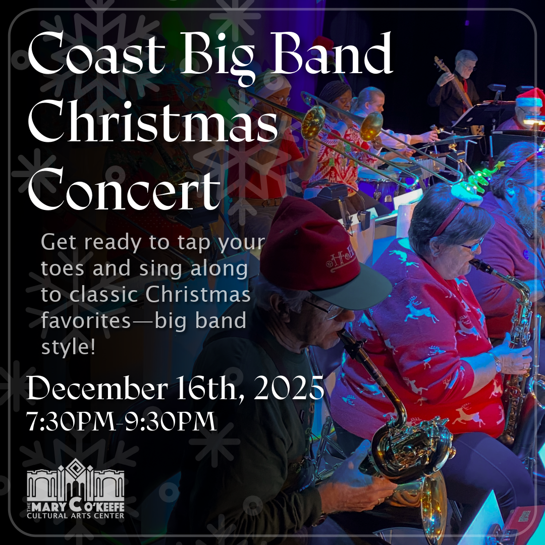 Coast Big Band Christmas Concert Tuesday, December 16, 2025 7:30 PM 9:30 PM The Mary C. O'Keefe Cultural Arts Center 1600 Government Street Ocean Springs, MS, 39564 United States (map) Google Calendar ICS Tickets